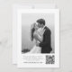 Ce Simple Script moderne QR Code Photo Faire-part de mariage avec deux toiles de superposition candide photo du couple heureux superposé avec un script élégant.