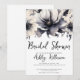 Conception de douche de mariée moderne, mignonne et simple avec des fleurs en noir et blanc. Un look classique mais fantaisiste avec des fleurs noires, grises et crème et des polices noires. Modifiez tout le texte avec vos propres informations. Que vous recherchiez un style floral classique, une ambiance boho ou un style métropolitain moderne et luxueux, cela peut convenir. Invitation de douche de mariée élégante et boho avec fleurs aquarelles noires et blanches.