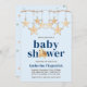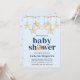 Voici un Boho Stars Cute Baby Sea Turtle Baby shower nautique Invitation avec un design doux et fantaisiste. L'arrière - plan est d'un bleu clair doux, ce qui lui donne une atmosphère calme et accueillante. En haut, des étoiles suspendues de saumons boho pendent des cordes, créant une atmosphère onirique et céleste. baby shower de mots affiché en évidence dans une grande police bleu marine audacieuse avec une petite tortue de mer souriante ajoutant une touche douce et ludique. Dans l'ensemble, l'invitation mêle les thèmes nautiques et célestes du baby shower à une esthétique charmante, moderne et familiale.