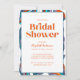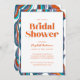 Vous recherchez une invitation moderne et branchée à votre Fête des mariées ? Regardez notre Boho Super Retro Typographie Wavy Bridal Shower Invitation! Cette invitation à la douche nuptiale ondulée présente de belles aquarelles aux lignes ondulées peintes à la main, avec un design abstrait coloré et boho donnant un look unique et tendance.