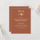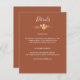Cette carte de détails de mariage à fleurs chute boho est parfaite pour un mariage de style bohème. Cette carte de détails présente des fleurs d'aquarelle en orange brûlé avec de la végétation sauge sur un arrière - plan en terre cuite. Ajoutez tous les détails du mariage tels que les informations de réception, les informations sur l'hébergement et le site de votre mariage. Pour plus de personnalisation, cliquez sur le lien "customiser plus" et utilisez notre outil de conception pour modifier ce modèle.