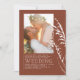 Laissez votre invitation vous refléter ainsi que votre amour. Avec ce design moderne, vous pouvez prendre l'une des photos qui vous sont propres et en faire le point central de cette invitation. Ces élégantes invitations de mariage en terre cuite sont simples et ont un design épuré minimaliste avec quelques roseaux de gazon de pampas autour de votre photo. L'orange brûlée est une couleur populaire cette année, ce qui en fait le choix idéal pour votre boho automne ou mariage d'été moderne. Votre jour de mariage est un moment important dans votre vie et une invitation photo a tout ce dont vous avez besoin pour créer un faire-part mariage inoubliable.