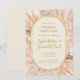 Cette invitation de réception de mariage boho tropical botanique | ivoire est parfaite pour votre réception de mariage élégant rustique floral, vert, pêche, or rose. Le design présente un cadre ou un bouquet doré avec de l'herbe de pampa rose blush moderne, du simple sauge, ivoire, feuille de palmier champagne et de la verdure classique de plage. Les fleurs peuvent inclure la rose rose et l'orchidée. Le design est idéal pour un mariage classe vintage terracotta, beige, rouille, hiver, printemps, automne. Veuillez trouver d'autres papeterie de mariage assortie ou coordonnée dans le reste de la collection.