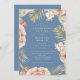 Invitation Boho Tropical Roses Dusty Blue Mariage