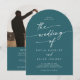 Ce faire-part de mariage d'arc de couleur bleu turquoise et de code QR est parfait pour un mariage minimaliste. La tonalité audacieuse turquoise de bijou moderne design bohème dispose de calligraphie rustique simple avec un style unique mais classique. Personnalisez le dos de votre invitation de mariage avec votre photo fiançailles préférée. Inclure un code QR pour que l'invité puisse facilement RSVP, afficher les détails ou les deux.