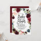 Célébrez la maman d'être avec cette belle invitation baby shower avec des illustrations aquarelle de la couronne bordeaux, rousse et bleu floral avec des accents de feuillage. Cette invitation au baby shower floral est parfaite pour les événements d'automne et de boho. Au verso de l'invitation se trouve un arrière - plan bordeaux avec une guirlande fleurie et deux lignes de texte personnalisables pour un texte supplémentaire. Des éléments correspondants sont disponibles.