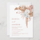 This elegant contemporary wedding invitation features watercolor painted orchid flowers and terracotta pampas grass on a white background.