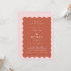 Une faire-part de mariage moderne et élégante avec une forme de pétoncle ondulé en terre cuite avec un bord rose vif avec une police blanche.
