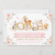 Invitation Bois Animaux Or rose Floral 1er anniversaire