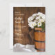 Invitation d'Invitations à votre fête d'anniversaire décontractée mais classe avec le charmant seau en bois et les marguerites blanches Sweet 16 Birthday Party Invitation. Personnalisez-le avec le nom de la jeune fille de seize ans et des détails spécifiques de votre événement rustique chic b-day. Cette jolie invitation sucrée personnalisée à 16 parties comprend une photo fleurie numériquement rehaussée d'un seau en bois rempli de fleurs de marguerite blanche et d'un arrière - plan en bois de grange patiné brun. Idéal pour une ferme rurale, une grange rustique, un ranch ou une fête occidentale.
