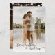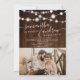 Mariage en bois brun rustique avec lumières à cordes et 2 photos collage grille.