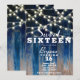 Invitation Bois de grange côtier rustique bleu et lumières po