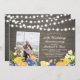 Célébrez votre jour spécial avec cette invitation personnalisée d'anniversaire de mariage avec photo. Ce design présente de belles fleurs bleues et jaunes et des guirlandes lumineuses sur un fond en bois rustique. Vous pouvez personnaliser le texte pour n'importe quelle année. Remplacez la photo d'exemple par votre propre photo. Des articles de fête assortis sont disponibles dans ma boutique BaraBomDesign.