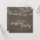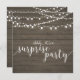 Célébrez votre jour spécial avec ce modèle d'invitation de fête surprise élégant. Ce design présente une calligraphie chic et des guirlandes lumineuses avec un fond en bois rustique. Parfait pour une fête d'anniversaire de mariage dans le jardin, dans une grange ou sur un thème vintage.