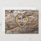 Photo d'écorce d'arbre avec cadre sculpté doré vintage pour vos noms ou initiales. De jolies fleurs blanches ajoutent une touche d'élégance à cette carte de réponse. Il y a une invitation de mariage assortie.