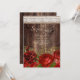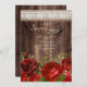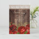 Invitation de fête d'anniversaire surprise pour femmes avec du bois sombre rustique et des fleurs rouges et dorées sur toile de jute avec de la dentelle blanche élégante. Contactez-nous pour obtenir de l'aide sur la personnalisation ou pour demander des produits assortis.