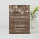 Cette belle et élégante faire-part de mariage rustique dispose de lampes à cordes en bocal de mason sur un arrière - plan en bois rustique vintage. Facile à customiser avec votre propre nom et informations mariages. Veuillez me contacter pour toute personnalisation de design supplémentaire dont vous pourriez avoir besoin pour votre beau mariage. Design © par TK Goforth. Pour la coordination des articles, veuillez visiter ma collection Rustic Mason Jars et String Lights et Floral Mariage ainsi que ma boutique Zazzle :
