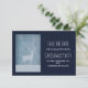 Enregistrez la carte de date pour une fête de noël. Conçu avec un arrière - plan en faux bois de couleur bleue. Sur le dessus se trouve la silhouette d'un renne avec de gros bois et de jolies illustrations de flocon de neige qui tombent autour de lui.