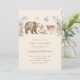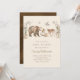 Animaux forestiers de bois Invitation au Baby shower neutre selon le sexe. Dans un écrin de beige serein, cette invitation présente des illustrations aquarellées de charmants animaux boisés, dont un ours, un écureuil et un cerf, nichés au sommet d'un délicat feuillage botanique. La typographie fantaisiste mais élégante présente élégamment les détails de votre fête, invitant les invités à célébrer l'arrivée prochaine dans le style rustique.