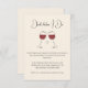 Cette élégante invitation avec deux verres de vin rouge est la meilleure façon pour les clients invitations d'une célébration la nuit avant le mariage. Que vous soyez en train d'inviter un petit nombre de familles et d'amis après la répétition ou d'accueillir une fête d'accueil pour tous vos invités, le texte peut être customisé à votre événement. Santé!