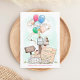 Douche virtuelle, illustration originale de Becky Nimoy montrant les colis et les cadeaux livrés à la boîte aux lettres décorée avec gâteau et ballons ; disponible sous forme de carte postale ou d'invitation, ainsi que douche ou baby shower nuptiale (topper de gâteau et changements de texte)