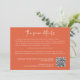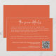 Cette carte de boîtier à code QR épurée et minimaliste est conçue avec une élégance contemporaine. Son design audacieux couleur orange coucher de soleil verona offre un look saisissant mais intemporel. Ajoutez l'URL de votre site Web mariage et le code QR sera mis à jour. Idéal pour les couples qui veulent une ambiance design et contemporaine pour leur journée spéciale. Vous pouvez modifier le texte et la couleur de l'arrière - plan pour qu'il corresponde au jeu de couleurs de votre jour de mariage si vous le souhaitez. Cliquez sur Personnaliser/customiser pour plus de détails.