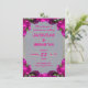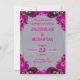 A luxurious and bold wedding invitation featuring vibrant magenta peonies surrounding a sophisticated gray background with elegant gold accents.