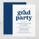 Invitations élégants de la fête de remise de diplômes avec "grad party" affiché en gras typographie bleu marine avec le nom du diplômé et les détails de la fête indiqués ci-dessous. Les simples invitations de la fête de fin d'études sont parfaits pour les diplômés du secondaire et du collège.
