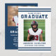 Announce your graduate’s celebration with this classic navy varsity-style graduation party invitation, designed with bold athletic stripes and strong collegiate typography for a timeless and confident look. The front features the graduate’s photo along with their name, school, and graduation year, creating a clean, structured layout that reflects their hard work and achievement. The back showcases a horizontal photo at the top, with space below for graduation party details including the date, time, location, and RSVP information, allowing you to personalize every aspect of the celebration. Perfect for high school and college seniors, student athletes, and sports enthusiasts, this navy photo graduation party invitation offers a polished and memorable way to invite family and friends to honor their milestone.