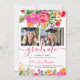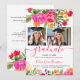 Invitation Bold Pink Orange Boho Floral 2-Photo Graduation