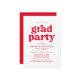 Invitations élégants de la fête de remise de diplômes avec "grad party" affiché en gras de typographie rouge avec le nom du diplômé et les détails de la fête indiqués ci-dessous. Les simples invitations de la fête de fin d'études sont parfaits pour les diplômés du secondaire et du collège.