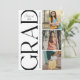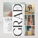 Make a statement with this bold typography graduation party invitation featuring oversized "GRAD" lettering alongside three senior portrait spots and a full back photo. The striking mix of dramatic serif type and elegant script creates a modern, editorial feel. All text is fully customizable on both sides to share your celebration details.