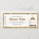 Invitation pour un bon de réservation pour dîner en tête-à-tête au restaurant en or.