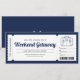 Invitation pour un bon de voyage cadeau bleu pour escapade de week-end.