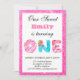 Bonbons sucrés à parties scintillant blanche et rose chaud pour le premier anniversaire. Ajoutez facilement votre nom complet, ainsi que la date, l'heure et l'adresse de la fête d'anniversaire.