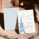 Dites bonjour bébé avec cette invitation chic et élégante au baby shower parisien. Conçu dans des tons doux et rougeoyants, une illustration de la Tour Eiffel attachée à un arc, et une typographie de script moderne, cet invitation est parfait pour célébrer une petite fille de style parisien. Le dos est recouvert de rayures bleues et crème classiques, ce qui lui confère une atmosphère de caractère poli et coquette.