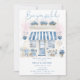 Invitation Bonjour Bebe bow Parisian café pink eiffel tower