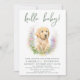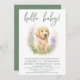 Invitation vos amis et votre famille pour célébrer l'arrivée de votre nouveau bébé garçon avec cette adorable invitation de chiot bonjour, accessoires de fête et cadeaux. Cette invitation baby shower présente un récupérateur doré à l'aquarelle peint à la main, parfait pour les amoureux de les chiens ! Le design est moderne et tendance, avec un jeu de couleurs vert sage et le texte "bonjour bébé" pour célébrer l'arrivée prochaine de votre nouveau bébé. DROIT D'AUTEUR © 2023 Judy Burrows, Black Dog Art - Tous droits réservés. Bonjour Baby Chien Chien Chien Chien Chien Moderne Sage Vert Baby shower Invitation