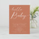 Bienvenue dans cette nouvelle arrivée en style avec cette invitation de Baby shower "Hello Baby"! Dotée d'un design tendance et minimaliste aux tons chauds de cuivre, cette invitation apporte une ambiance boho moderne à votre célébration. L'écriture audacieuse et fluide ajoute une touche accueillante, tandis que la disposition propre et la palette de couleurs neutres créent une option sophistiquée et neutre pour le genre qui s'intègre parfaitement à n'importe quel thème de douche. Idéal pour les parents qui apprécient l'élégance simple, cette invitation est parfaite pour célébrer avec amis et en famille dans un cadre confortable et élégant. Customisez-le avec les détails de votre événement pour le rendre unique.