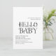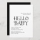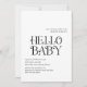 Invitation de baby shower moderne avec un agencement minimal avec "Hello Baby" en typographie audacieuse au milieu. Tous les éléments de conception sont en noir et blanc et peuvent être modifiés dans l'outil d'édition de conception. Cette invitation baby shower simple mais élégante est neutre pour le genre, ce qui en fait un grand pour un baby shower garçon ou fille.