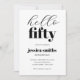 Invitation minimaliste de 50ème anniversaire avec une typographie moderne simple en noir et blanc.