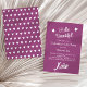 Définissez le ton d'une célébration magique avec la "Carte d'invitation de fête pour filles 'Hello Beautiful! Magical Purple XOXO'" Cette invitation époustouflante présente un fond violet rêveur avec des accents scintillants et une typographie ludique "XOXO", parfaite pour une fête glamour et amusante. Personnalisable avec les détails de votre événement, elle est idéale pour les anniversaires, les sweet sixteen ou toute autre occasion spéciale pour les filles. Le design vibrant ravira vos invités et rendra votre événement inoubliable.