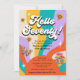 Revenez à l'époque super des années 1970 en célébrant le 70e anniversaire de l'invité d'honneur dans un style rétro. Préparez-vous à revivre la paix, l'amour et la liberté du mouvement hippie avec un parti super qui transportera tout le monde à une époque de pouvoir fleuri et de boules de disco. Encouragez vos invités à se vêtir de leurs meilleurs vêtements inspirés de la hippie, des clochers aux gilets de franges en passant par les bandeaux et les chaussures de plateforme. Ce design d'invitation à la fête a un coup de soleil coloré audacieux avec des rayons ondulés émettant dans l'arrière - plan. Une police super des années 70 épelle "Bonjour soixante-dix !" dans le style de cette époque révolue. Personnalisez le modèle de texte avec les détails de votre partie.