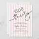 Célébrez vos 30 ans avec style grâce à cette invitation chic mettant en vedette une typographie moderne qui lit “Bonjour Trente”. Placée sur un fond rayé rose pâle et blanc, son design épuré et élégant en fait un choix parfait pour son jour spécial.