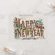 Illustration vintage Happy New Year holiday design initialement publié par Currier & Ives en 1876 avec les mots "Happy New Year" écrits dans des branches d'arbres et décorés de saints, de glands et de fleurs célébrant toutes les saisons de l'année.