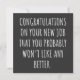 Bonne chance pour le nouveau travail. Ce sera probablement la même chose, vous ne connaîtrez personne.