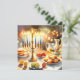 Illustration de l'aquarelle Hanoukka. Une table joliment aménagée pour une célébration festive, avec un menorah traditionnel aux bougies éclairées. Une lumière douce et chaleureuse, tandis que les décorations de vacances apportent une touche de gaieté. Lumières chaudes créant une atmosphère confortable et accueillante.