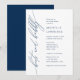 Douche nuptiale Brunch and Champagne party (bottes et bulles) carte d'invitation à la fête, dans un script romantique minimaliste moderne, thème bleu marine classe (imprimé et/ou téléchargeable comme invitation à la pièce jointe). Faisons doucher la mariée, invitation les invités avec cette carte d'invitation parfaite. Ajoutez les détails de l'invitation de votre fête de la douche nuptiale.