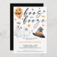 Invitation de fête d'Halloween avec des fantômes aquarelle, ballon citrouille orange, casquette sorcier, et texte "boos et booze". Invitation tes amis à ta fête d'Halloween adulte avec ces adorables boos amusants et booze les invitations de la fête d'Halloween. Idéal pour les soirées costumées et cocktails.