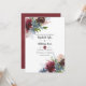 Fleurs de pivoine et feuilles d'eucalyptus bébé faire-part de mariage avec des accents de bordeaux, prune, rose rousse, indigo, marine et bleu poussiéreux.